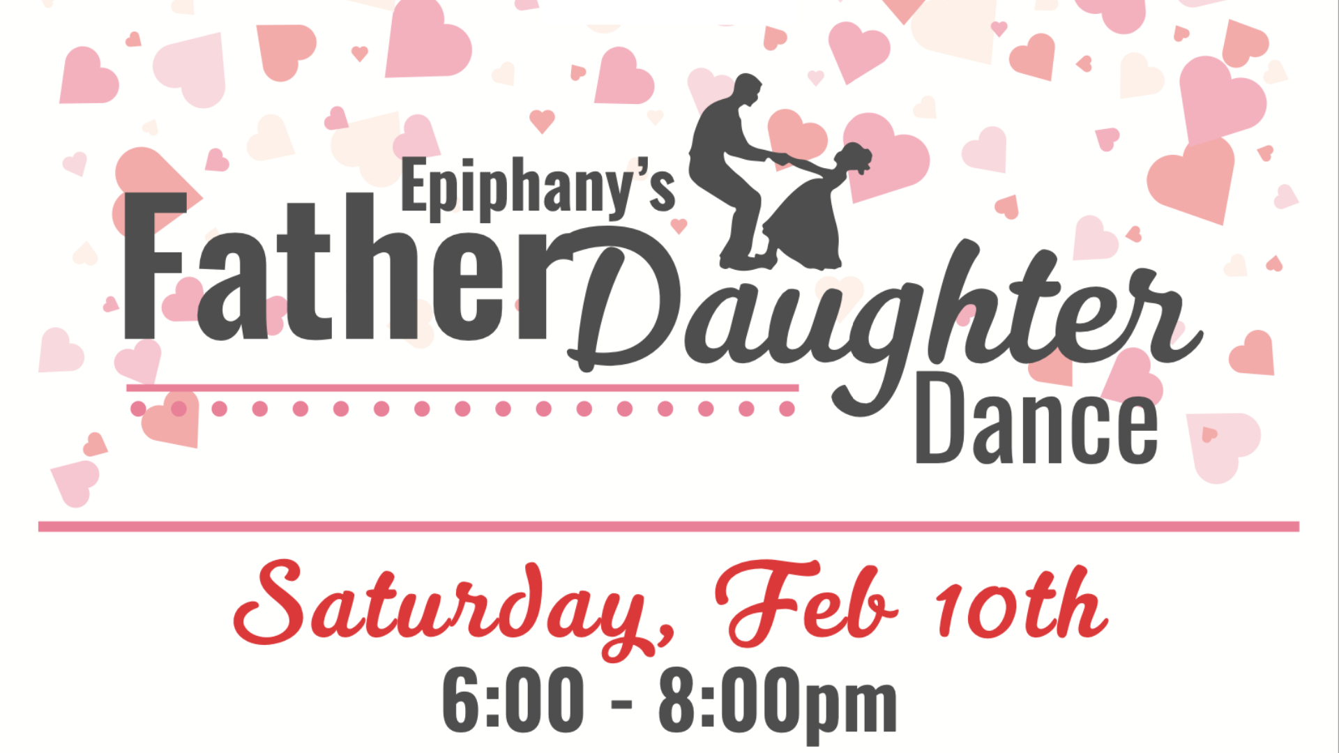 Saturday, February 10, 2024 from 6:00pm – 8:00pmBe sure to click the link below to register your attendance. The Epiphany Preschool is proud to continue its annual Father/Daughter Dance on Saturday, February 10, 2024, in the Worship Center. This Valentine-themed event will be held from 6:00pm – 8:00pm. All fathers and daughters (18 months – […]